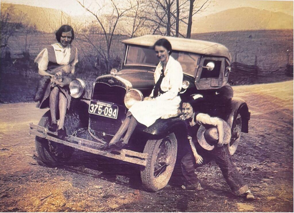 Based on a words written on the back of the photo, Kathleen was the owner of the car. It seems likely that she was enjoying showing off her brand-new car to her two younger neighbors. Kathleen and Ruth’s older brother Fred (William Frederick Hurt) built the house where the car is parked. Fred was married to Nannie Elizabeth (Williams) Hurt who most likely was the person taking this picture since she is known to have written the words on the back of the photo